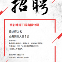 富彩地坪工程有限公司招聘1、设计师2名 业务员2名,薪资条件面议详谈2、要求熟悉操作电脑设计常用软件,能快速处理图片,车库设