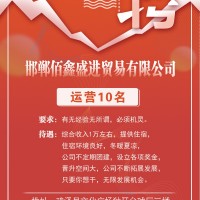 邯郸佰鑫盛进贸易有限公司招聘1、运营10名,综合收入1万左右,提供住宿,住宿环境良好,冬暖夏凉有无经验无所谓,要求必须机灵。
