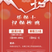 乐堡士.汉堡炸鸡招聘店员2名(后厨工作人员),要求:50岁以下长期工,有工作经验者优先工资待遇:长期工3000-4000,非诚勿扰。