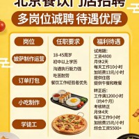 北京招聘1.披萨制作 运营2.订单打包3.小吃制作4.学徒工任职要求:18-45周岁 初中以上学历,沟通执行能力强 ,吃苦耐劳 餐饮工作