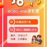 bobo-ann手作馆招长期工和周末 假期兼职,30岁以下,工资面议。地址:水木清华步行街东头路南