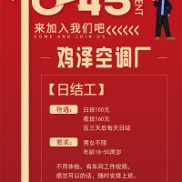 鸡泽空调厂招聘日结工,白班150元,夜班160元,男女不限,年龄18-50周岁,压三天后每天日结工资,不用体检,有车间工作视频,感