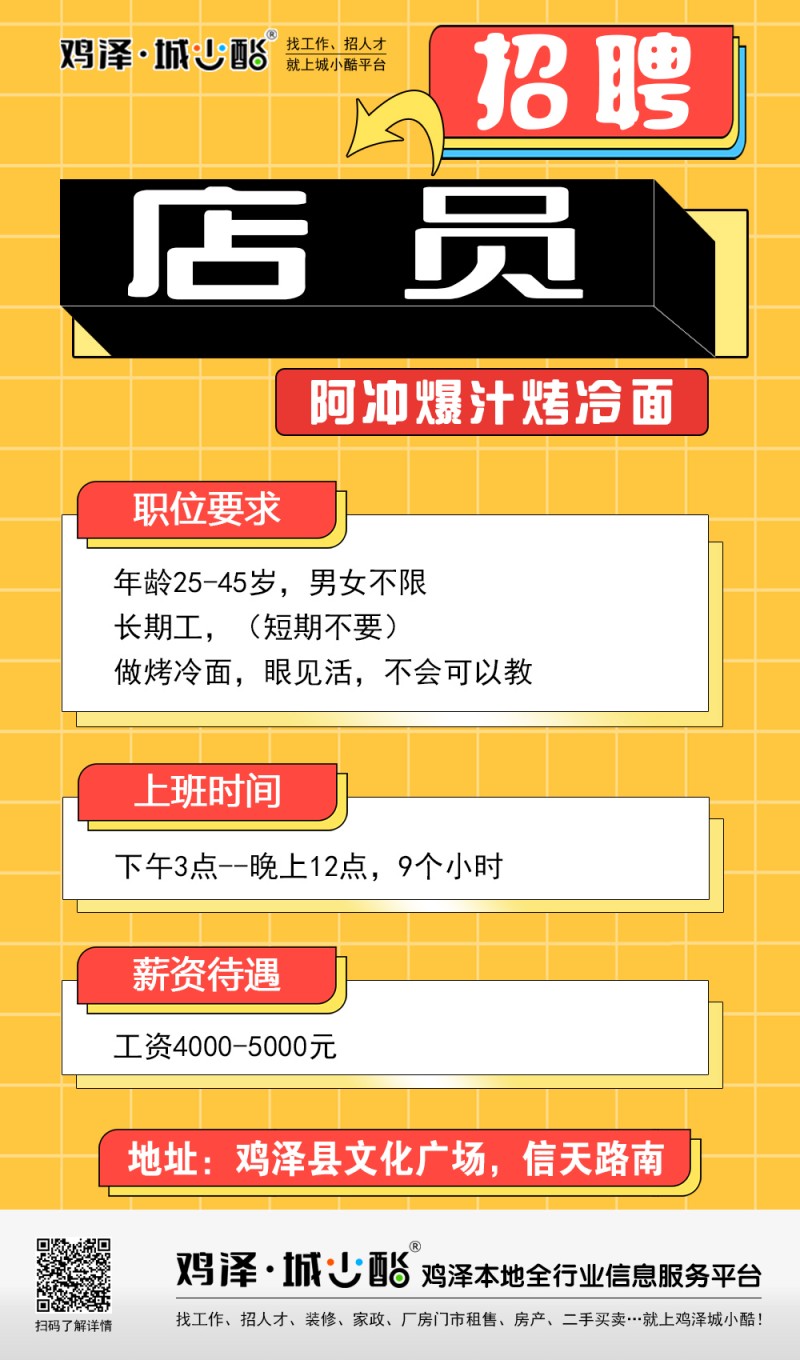 鸡泽县城招聘技术总监:月薪10k-20K【职位待遇】1. [工资待遇]:10K-20K+奖金+五险(全面职工社保)2. [福利] 每周双休+法定节假