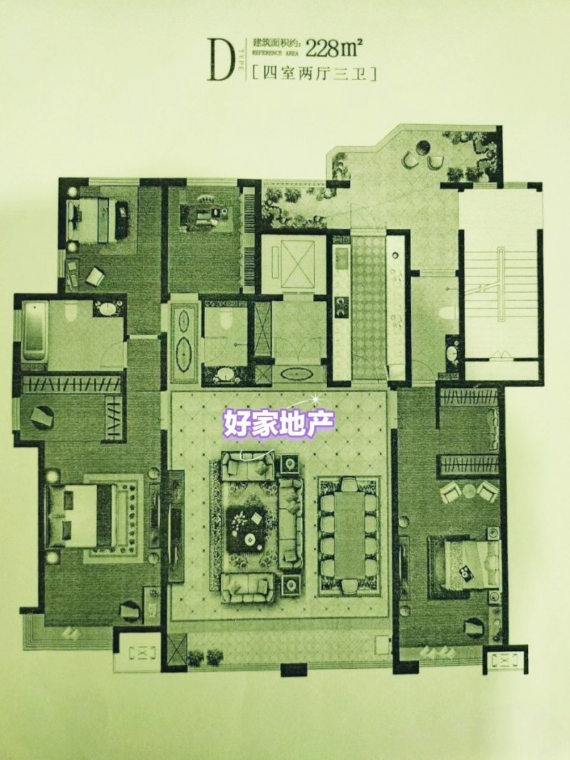 凤凰城四居室132平,单价3800一平精装修,定金留房