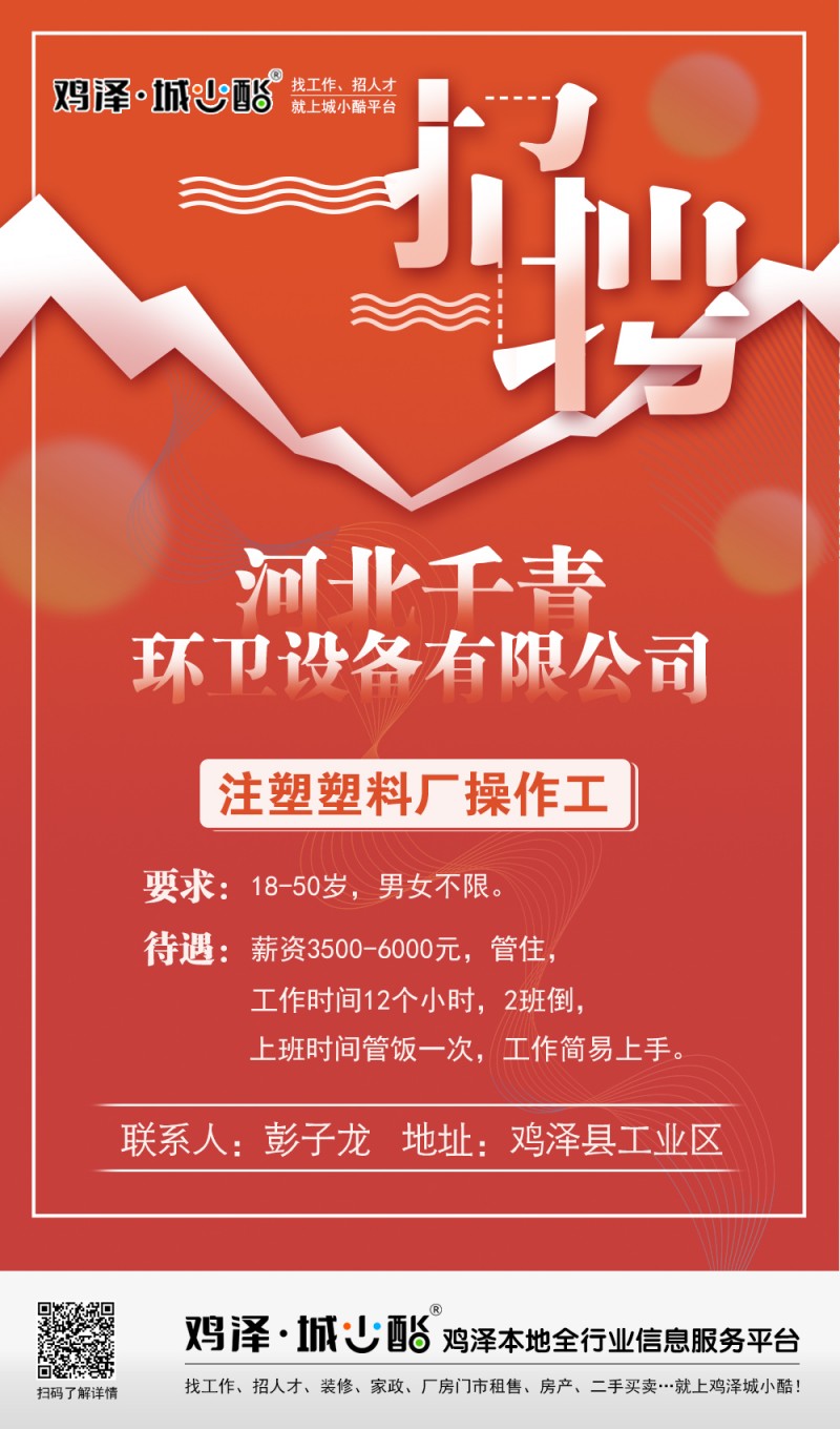 河北通泽招聘 职位:数控机床操作工,设备操作工,普工若干名,简单易学。年龄:25-55岁, 要求:有开航吊经验者优先 待遇:室内