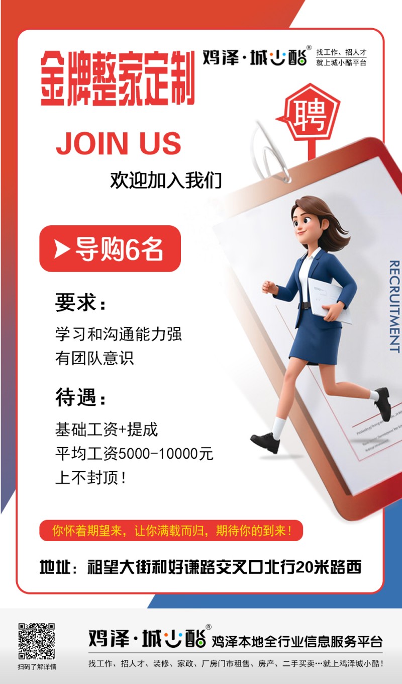鸡泽县湘辣赢食品有限公司招聘1、女工4名,年龄不限,能简单认字,干活利索,工资计件工资:3000~6000。2、装卸工3名,要求男士