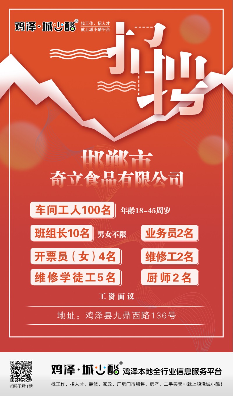 - 招聘职位:销售,文员,后厨/厨师,前台/收银,普工/技工