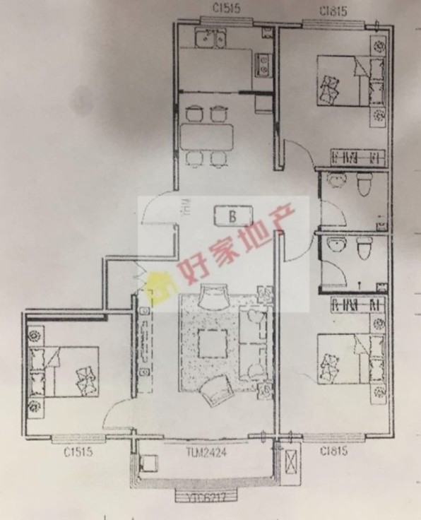 出售凤凰城小区首付5万,三居室中间层,三室两厅一卫精装修。