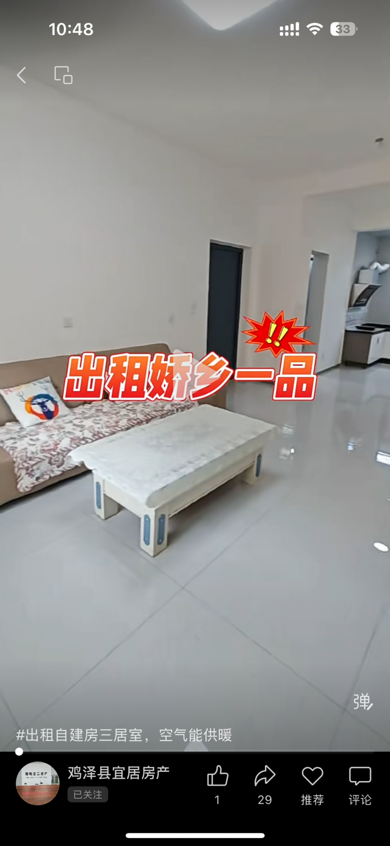 【出租】娇乡一品园中园,新房,家具家电齐全,15000一年,免费取暖。☎️