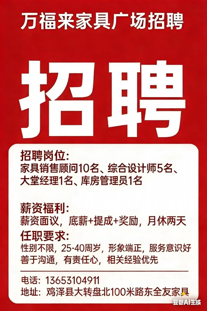乐购超市招聘信息- 招聘岗位:收银员- 招聘人数:5名- 招聘岗位:理货员- 招聘人数:5名- 年龄要求:25-40岁- 工作地点:鸡泽县